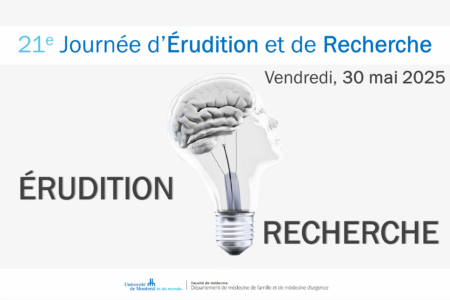 Après 1 an d’absence ayant permis une refonte des critères de réalisation des projets d’érudition, la Journée de l’érudition et de la recherche du programme de médecine de famille aura lieu à nouveau à l’Université. C’est une occasion exceptionnelle où tous les résidents, entourés de nombreux enseignants, se rassemblent pour célébrer la présentation de leurs travaux d’érudition et de recherche. Une contribution précieuse qui enrichit et fait rayonner notre profession !